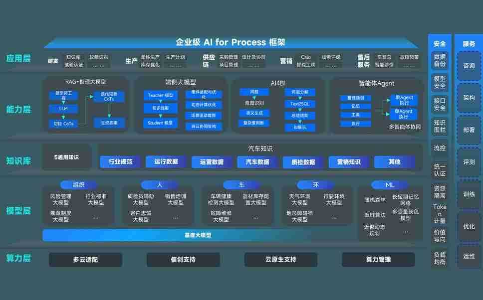 端到端的一站式AI工作空间深度融合了从企业战略规划到日常经营的全流程业务板块,,,定向解决车企内部领域多、、部门多、、、链条长、、、场景碎片化等难题,,,,支持车企快速构建以AI为核心的生产力写作体系,,,实现任务执行与AI能力的无缝集成与交互